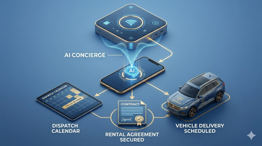 Traditional luxury rental agencies often rely on a manual “request a quote” system or a small office team that goes home at 6 PM. This creates a massive revenue leak during the evening and weekend hours when most leisure travel and event planning occur.